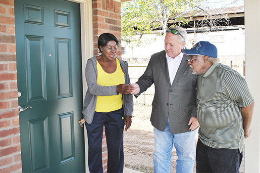 Barbara and Morris Austin receive the keys to their new home from Troup Mayor Joe Carlyle. “Being a home builder, I’m always excited for families to move into their new homes,” Carlyle said. “Now I get to experience this with our own families as mayor.”
